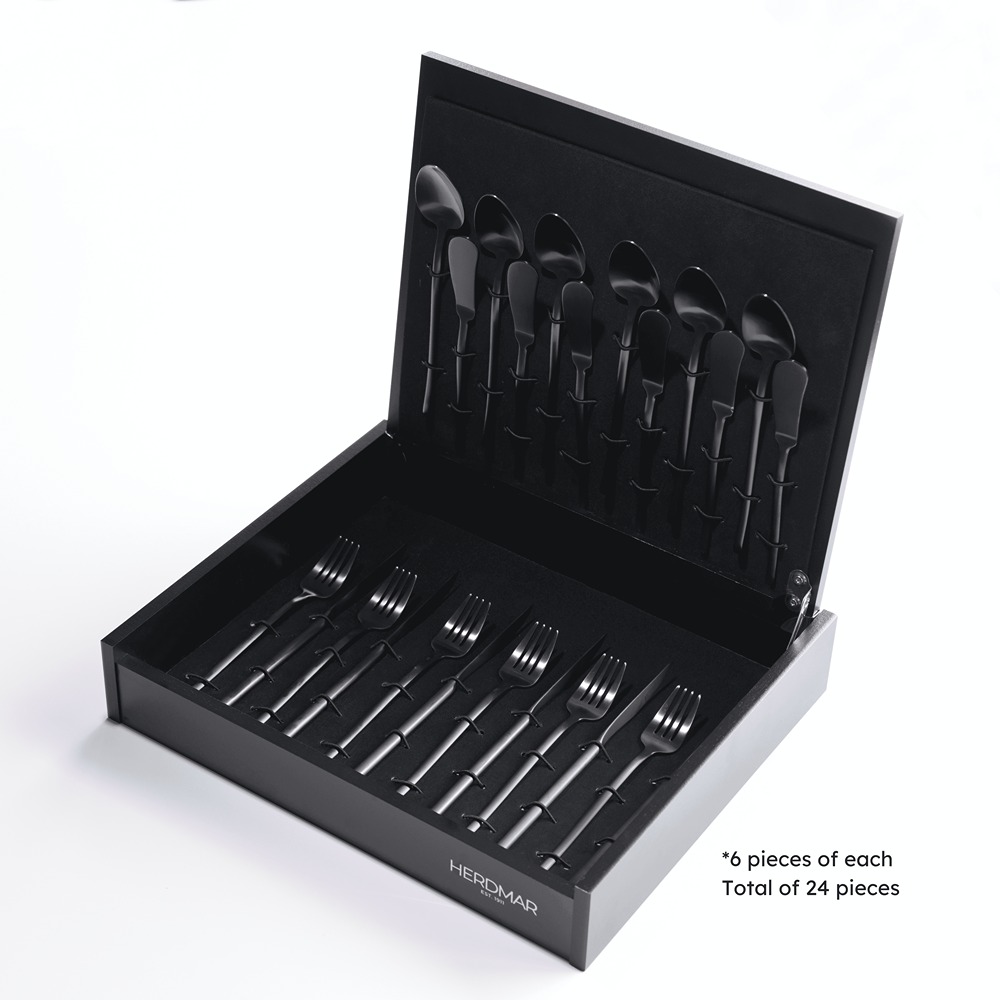 Set includes: 6 dessert knives, 6 dessert forks, 6 dessert spoons, 6 butter shovel