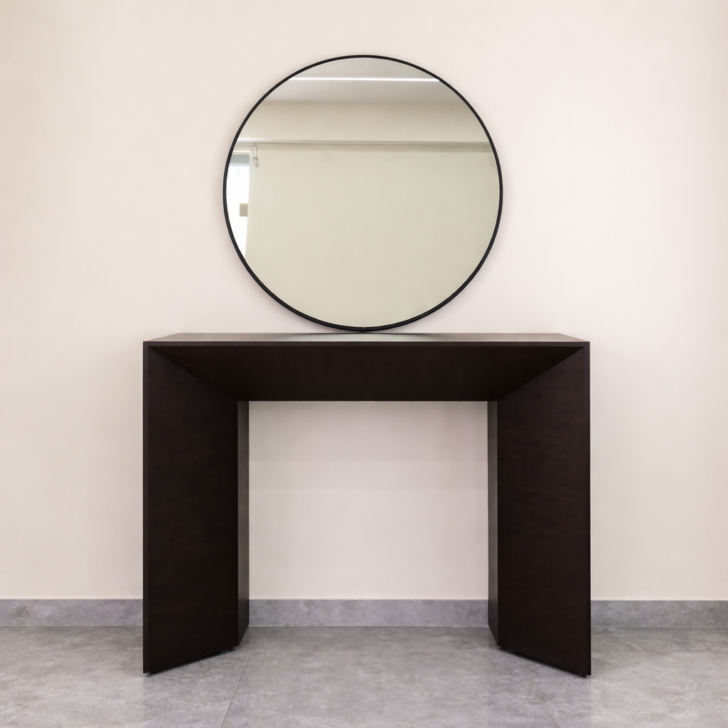 Mirror included Dimensions: Width: 120cm Depth: 40cm Height: 92cm Dimensions (mirror): Diameter: 90cm
