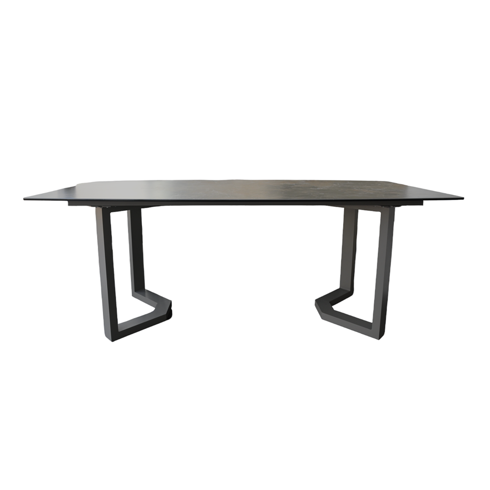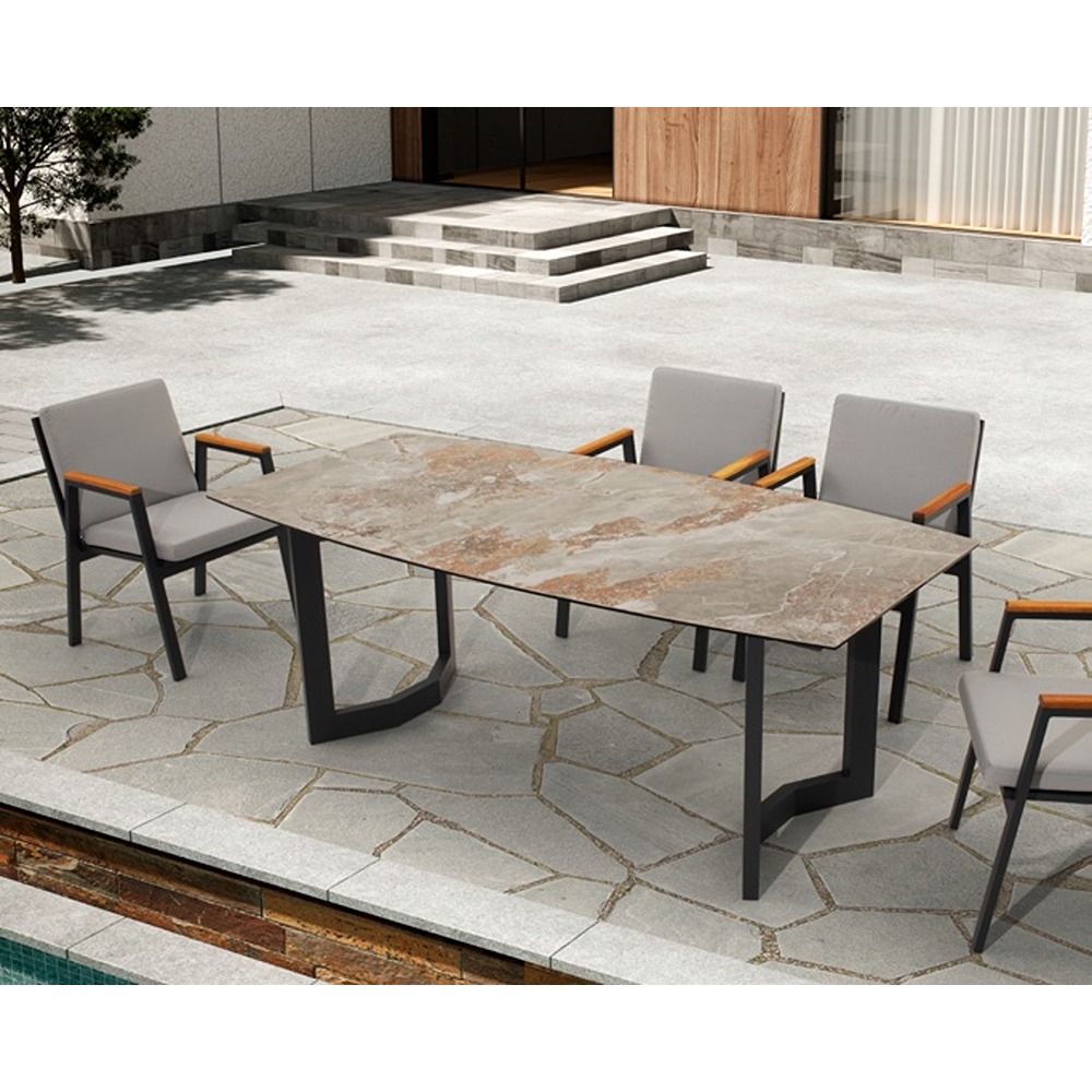 Table Slab: Mocha perla, Dimensions (table) Width: 200cm Depth: 100cm Height: 76cm, Dimensions (chair) Width: 59cm Depth: 65cm Height: 90cm,