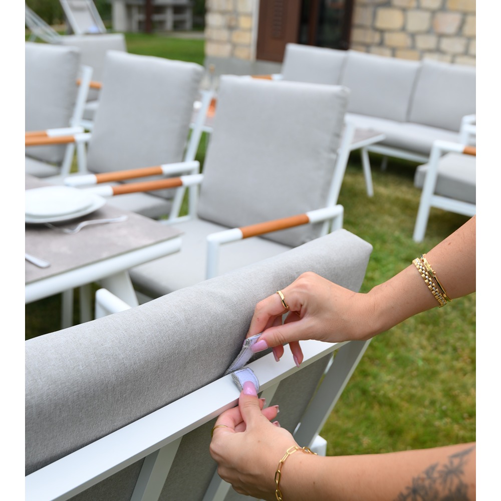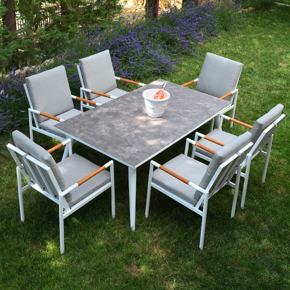 Tags: aluminium structure, CC, China, light gray fabric, outdoor furniture, polywood structure, rectangular, table + 6 chairs, white