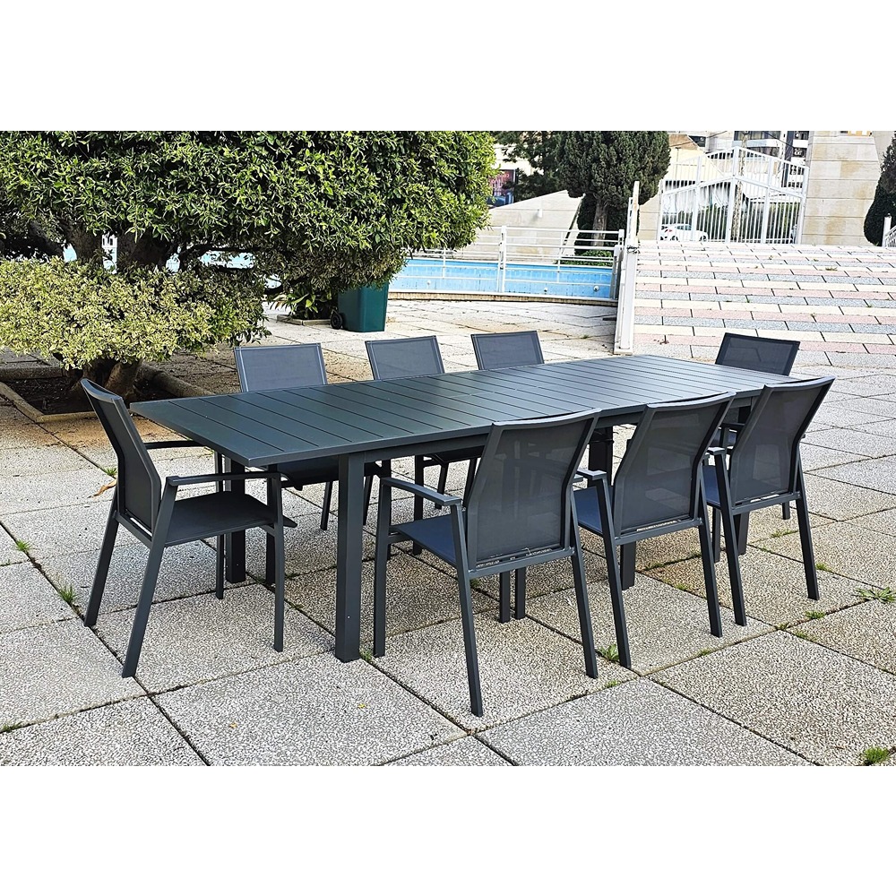 SKU: 70102FUR0099 Categories: Dining Sets, Outdoor, Seating and Dining Tags: aluminium structure, China, Ff, gray fabric, grey, outdoor furniture, rectangular, table + 8 chairs Brand: Ff