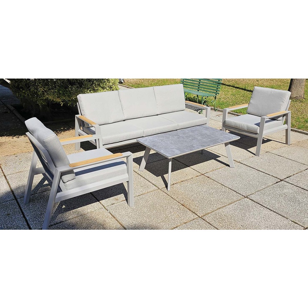 Tags: 3+1+1+table, aluminium structure, China, Ff, greige, light gray fabric, outdoor furniture, polywood structure