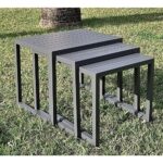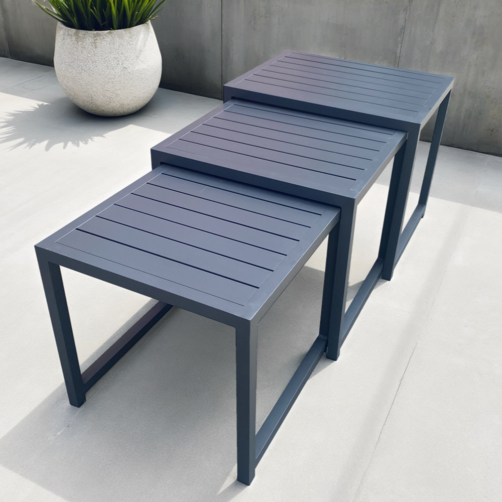 Dimensions (small table): Width: 42cm Depth: 42cm Height: 40cm, Dimensions (medium table): Width: 48cm Depth: 42cm Height: 43cm , Dimensions (large table): Width: 53cm Depth: 42cm Height: 46cm ,